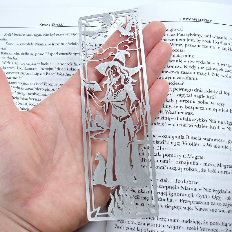 - Opakowanie: czarne etui ze wstążką – idealne, by wręczyć tę magiczną zakładkę w prezencie komuś, kto będzie wiedział, jak z niej zrobić użytek.