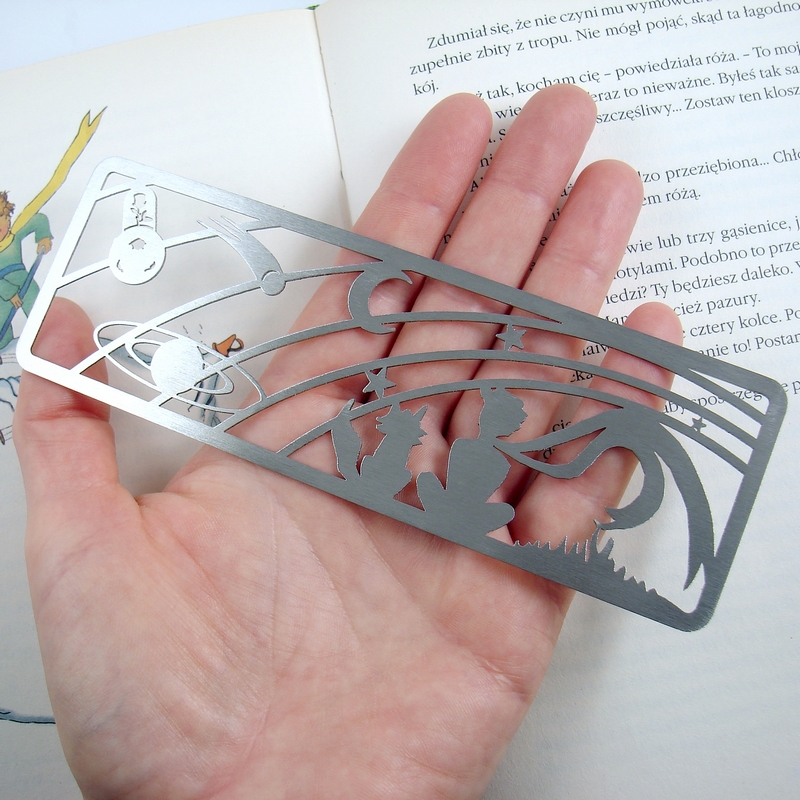 Tego nie mogło zbraknąć wśród wzorów naszych stalowych zakładek. „Mały Książę” wydany ponad 80 lat temu został przetłumaczony na ponad 300 języków/dialektów i rozszedł się w nakładzie 140 mln egzemplarzy. Klasyka i klasa zwięźle ujęte w powieści filozoficznej niezmiennie trafiają do serc wielu pokoleń czytelników. Nasza zakładka jest w pewnym sensie hołdem dla tej wspaniałej książki. I choć na pierwszy rzut oka może się wydawać podobna do stu tysięcy innych zakładek, to jeżeli ją oswoisz… stanie się dla Ciebie najulubieńszą zakładką na świecie.