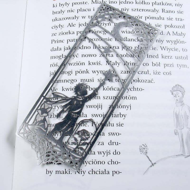 Metalowa zakładka do książki z Małym Księciem, lisem i efemeryczną różą