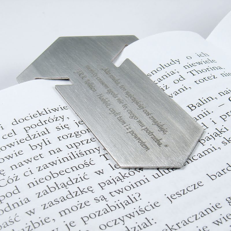 Podkreślam raz jeszcze: ta zakładka ma jednostronny grawerunek wliczony w cenę (jako jedyna spośród naszych stalowych zakładek. Do pozostałych zakładek możesz zamówić grawer jako dodatkową usługę).