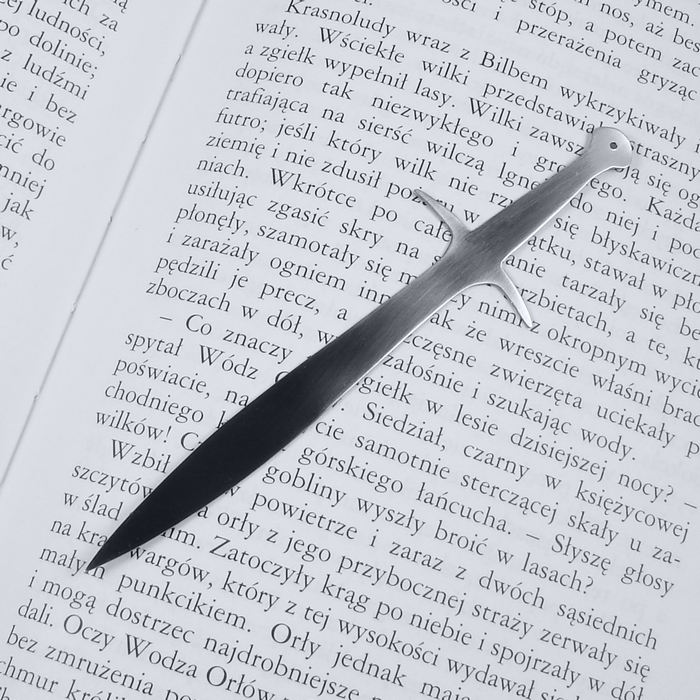 Legendy głoszą, że jego głownia jaśnieje niebieskawym światłem, gdy czytasz o goblinach lub orkach 😉 ale kto by tam wierzył w legendy!? Za to w pełni udokumentowaną mocą tej fenomenalnej zakładki do książek jest to, że niezawodnie zaznacza miejsce w książce, którą trzeba było przestać czytać.